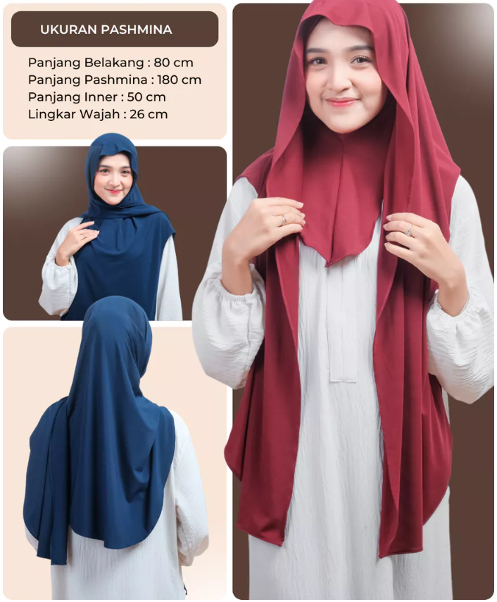 Bagus banget pashminanya! Innernya pas di kepala, nggak bikin pusing sama sekali. Bahannya juga adem dan jatuh pas dipakai. Thanks seller!