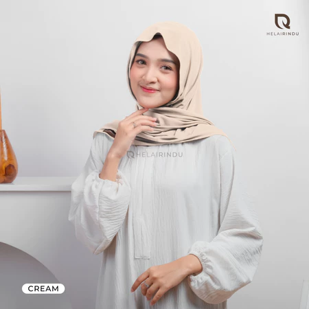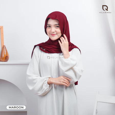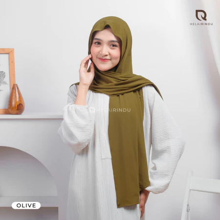Potongan oval di belakang memberikan efek flowy yang anggun, menutup punggung lebih rapi dan elegan dibanding pashmina lurus.